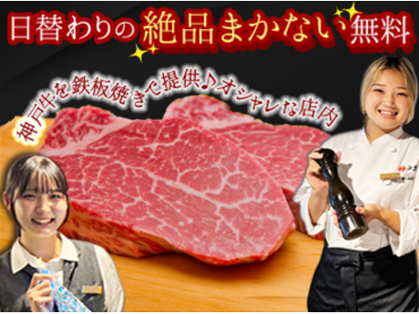 【鉄板焼き店のホール】人気の鉄板焼き屋さん!シフト2週おき→プライベートの予定もたてやすい!平日お昼歓迎!主婦(夫)さん活躍中!家庭都合の急なお休みもOK!